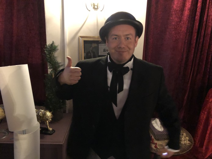 Friday We moved location to Hornsey Town Hall and shot a lot of technical heist stuff. It was the first time I filmed with Stuart Barter AKA Stuggy who was brilliant - super committed to the character of the villanious Antony Agonist, and extremely funny.
