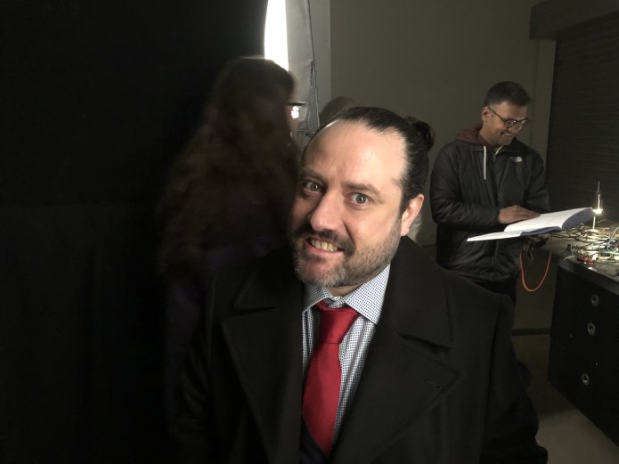 Thursday Whilst the shooting went well - as it always has thus far - I can't say that this was a good day overall. An astonishingly serious problem appeared out of nowhere, causing mass wailing and gnashing of teeth. But! due to a frankly superhuman effort from the production team over the past 5 days, we've been able to continue filming. (In Game Of Thrones terms it wasn’t quite the Red Wedding or the destruction of the Sept of Baelor, but it was pretty much on the same level of "ARGH" as Littlefinger's betrayal of Ned Stark.) In infinitely less horrid news, Thursday marked the return of everyone's favourite science loony - The Professor, played by the ever-lovely Robert Llewellyn. It's always a treat to have Robert on set.
