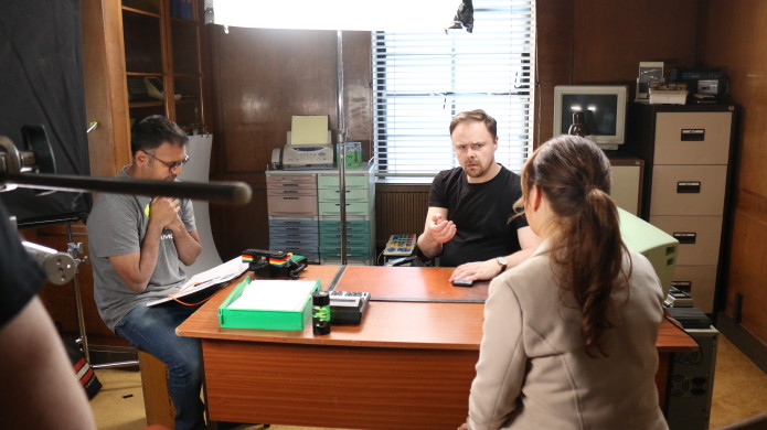 The final day! And my goodness we made the most of it. More office-based stuff and other scenes I can't even mention without giving away plot points. We wrapped at 11pm and all immediately collapsed ill, as our willpower-fuelled adrenaline gave up and took our immune systems with it. (This is traditional on low budget film shoots.)