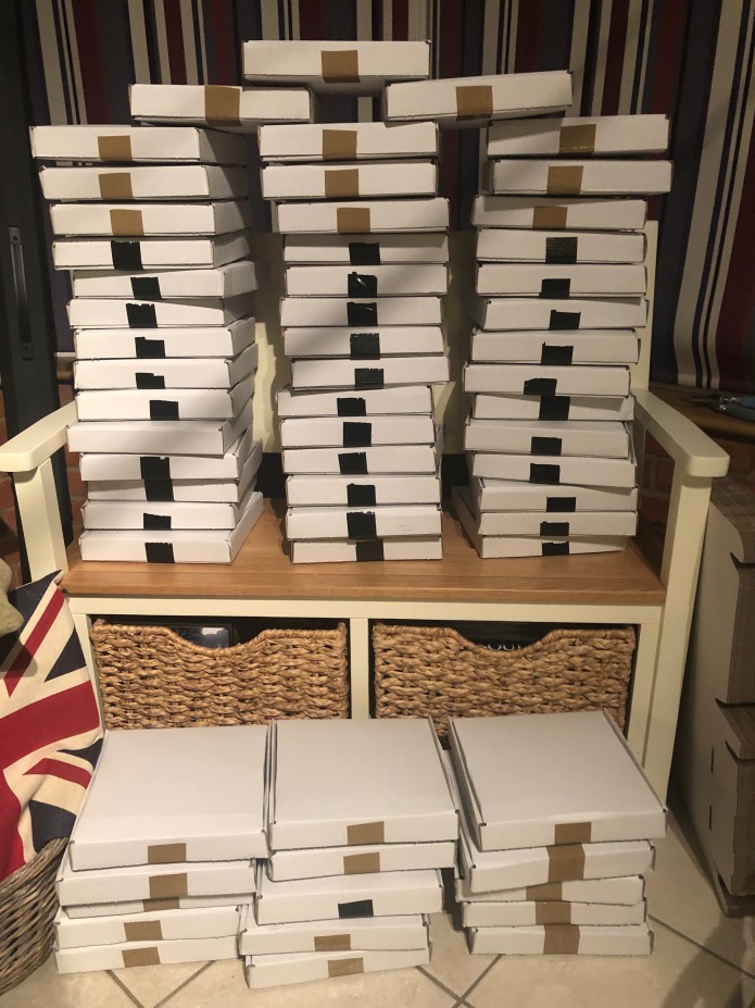 I’ve been fighting an uphill battle sorting out the Collectable Sofa Slices but they’re almost ready now – they’ll start being sent out next week. My apologies for putting in the campaign that these would be sent out in October, which I had completely forgotten about until someone pointed it out! That date was based on only about 30 being made, which I originally thought was the upper limit as that was all the sofa material I had. Then I ended up skinning another sofa piece entirely and being able to offer loads more. I’m putting them all together by hand and by gum it’s taken a while, but hopefully they’ll be with you by Christmas. (Unless you’re in Canada where the postal service is on strike I believe.)